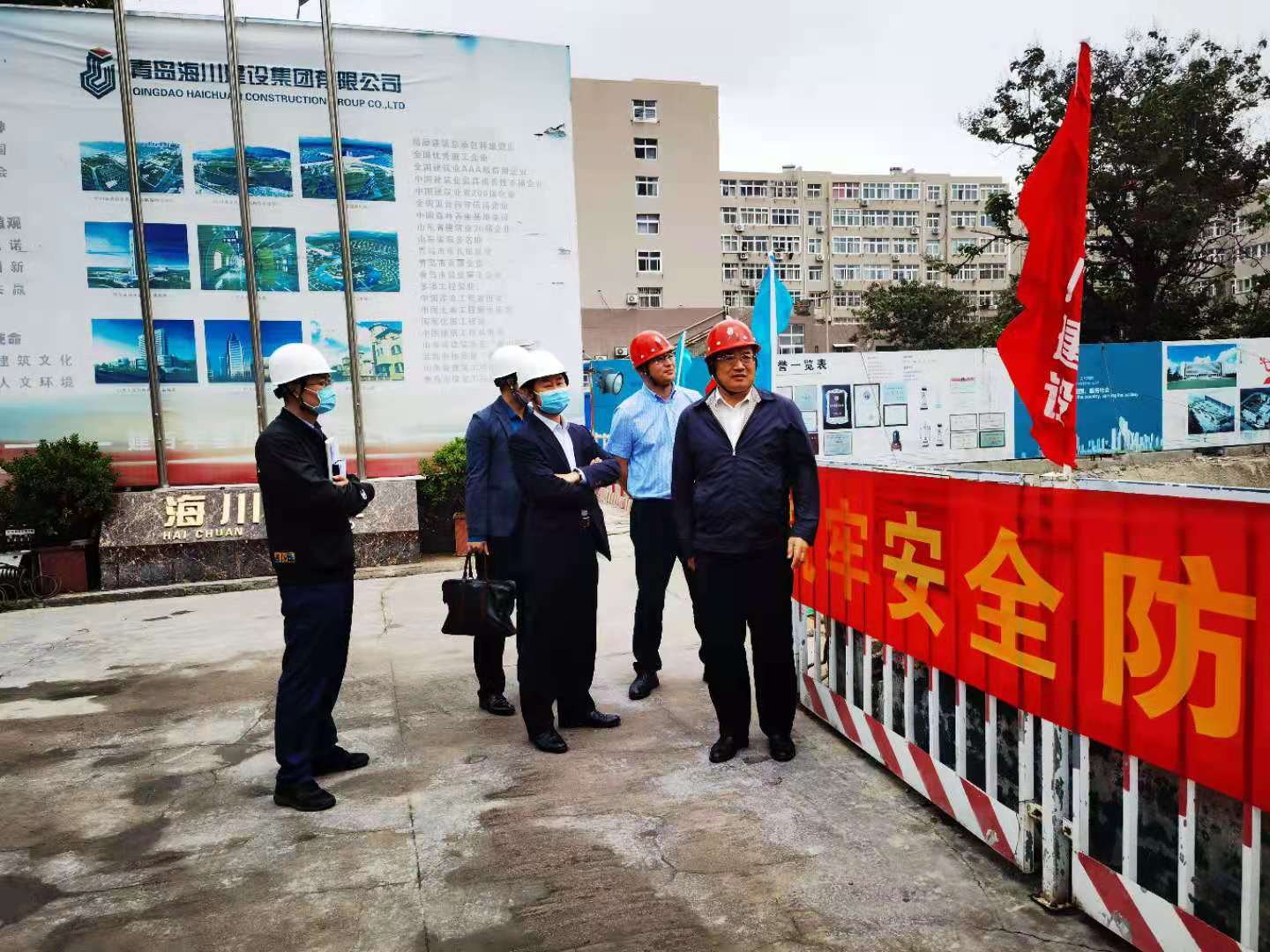 市北區(qū)人大常委會主任宋正義一行走訪海川建設集團進行調研2020-02-192月18日下午,市北區(qū)人大常委會主任宋正義、市北區(qū)人大辦公室主任鄭留華、海倫路街道辦事處書記尹書浩、市北區(qū)城市建設更新局征管中心副主任梁學建一行來到海川建設集團正在施工建設的市北區(qū)青島科技創(chuàng)新園B區(qū)走訪調研。青島海川建設集團董事長吳鑫向宋正義主任作了工作匯報,集團副董...