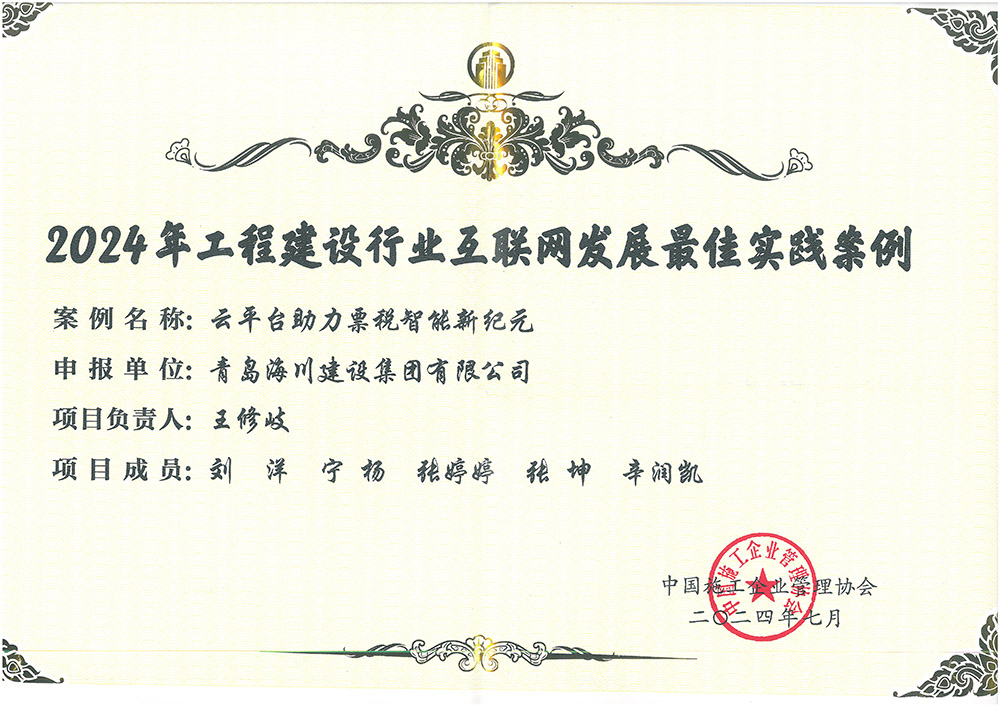 青島海川建設集團榮獲中施企協 “全國工程建設行業(yè)互聯網發(fā)展最佳實踐案例”2024-08-31近日,由中國施工企業(yè)管理協會主辦的中國第九屆工程建設行業(yè)互聯網大會在成都舉行,本次大會以“數字化賦能新質生產力發(fā)展”為主題,吸引了來自全國工程建設、互聯網、數字化、智能化等領域專家、企業(yè)高管及代表超4000人參加。會上,中國施工管理企業(yè)協會發(fā)布了2024年工程建設行業(yè)互... -