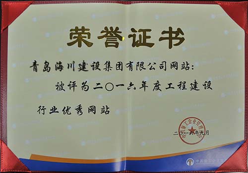 海川集團網(wǎng)站被評為2016年度工程建設行業(yè)一級優(yōu)秀網(wǎng)站