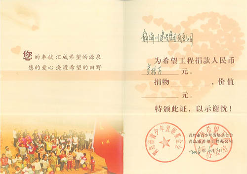 海川集團(tuán)多年來(lái)一直把履行社會(huì)義務(wù),回饋社會(huì),報(bào)效祖國(guó)作為企業(yè)的重要職責(zé),在企業(yè)發(fā)展的同時(shí),不忘社會(huì)公益事業(yè),十幾年來(lái)已向社會(huì)公益事業(yè)捐款累計(jì)超過(guò)460萬(wàn)元:先后向青島市教師素質(zhì)專項(xiàng)基金捐款30萬(wàn)元,捐建貴州江口縣雙江鎮(zhèn)希望中學(xué)30萬(wàn)元,捐建膠南市黃山鎮(zhèn)希望小學(xué)30萬(wàn)元。并通過(guò)基金會(huì)捐助惜福鎮(zhèn)后金小學(xué)多臺(tái)電腦用于教學(xué),2013年4月,又向惜福鎮(zhèn)“為了惜福孩子的明天”大型公益活動(dòng)捐款30萬(wàn)元。另外,在汶川地震期間,組織廣大職工開展賑災(zāi)捐助活動(dòng),奉獻(xiàn)愛心,先后向市紅十字會(huì)捐款129690元,榮獲“紅十字博愛銀獎(jiǎng)”。近年又為惜福鎮(zhèn)教育基金捐款300萬(wàn)元。2014年至今,連續(xù)三次組織員工積極開展無(wú)償獻(xiàn)血公益活動(dòng),緩解了島城醫(yī)療機(jī)構(gòu)臨床用血的緊張局面,充分體現(xiàn)了海川集團(tuán)及廣大員工的社會(huì)責(zé)任感和無(wú)私奉獻(xiàn)精神。