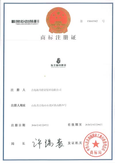 2016年5月16日,公司正式收到“泓久海川建設(shè)”商標(biāo)注冊證書,這標(biāo)志著海川集團(tuán)沿用六十多年的標(biāo)志正式成為商標(biāo),受國家法律保護(hù),為公司進(jìn)一步創(chuàng)建企業(yè)品牌、搶占市場先機(jī)、開拓埠外市場夯實(shí)了基礎(chǔ)。